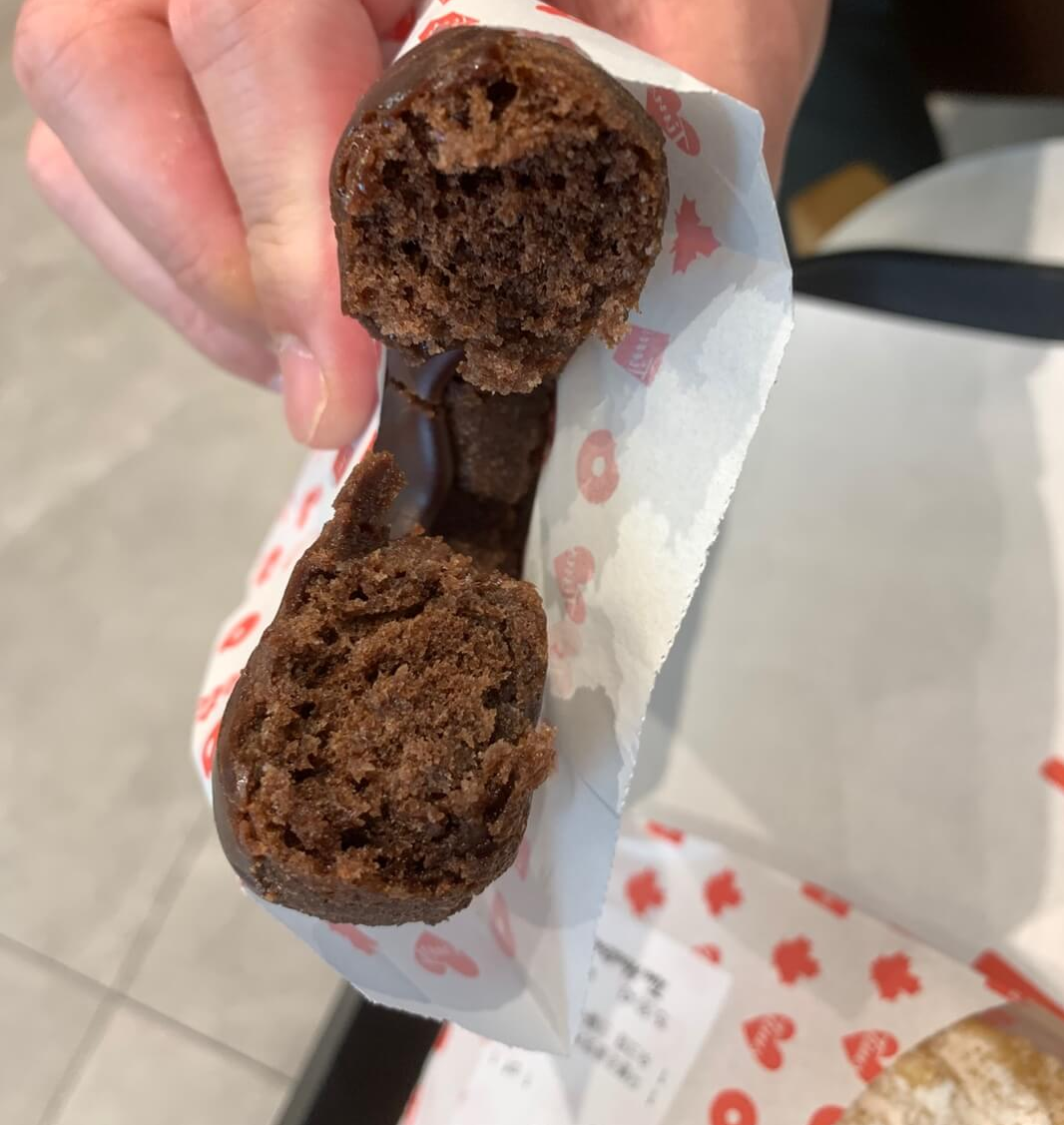 아래 사진 왼쪽의 더블초콜릿 케이크 도넛이고