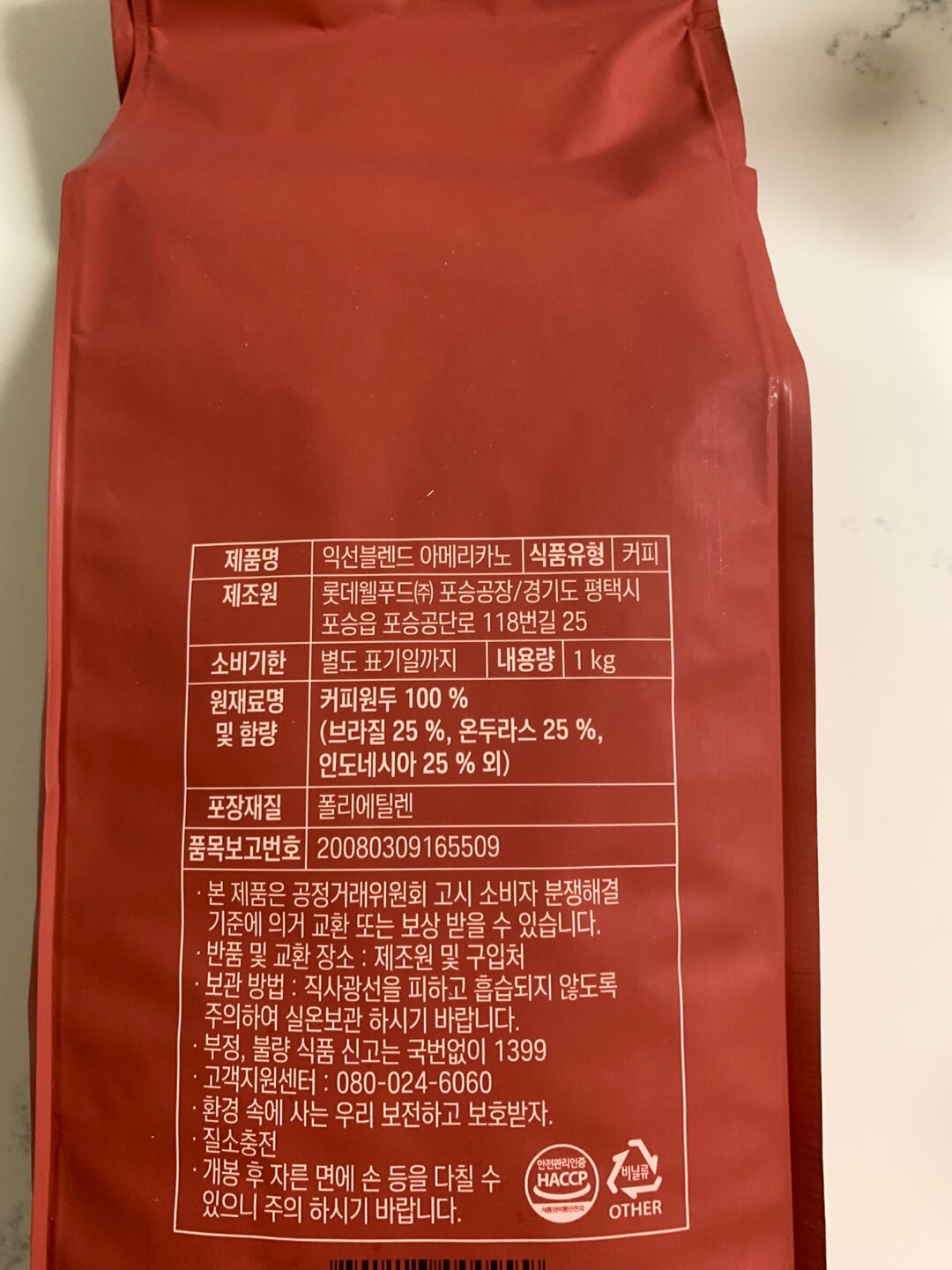 용량은 1kg, 제조는 롯데웰푸드이고, 가격은 기억이 안 나는데 아무튼 저렴한 것이 극장점.